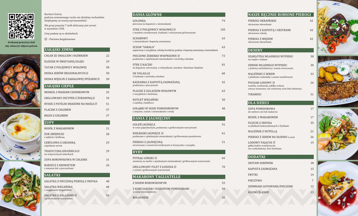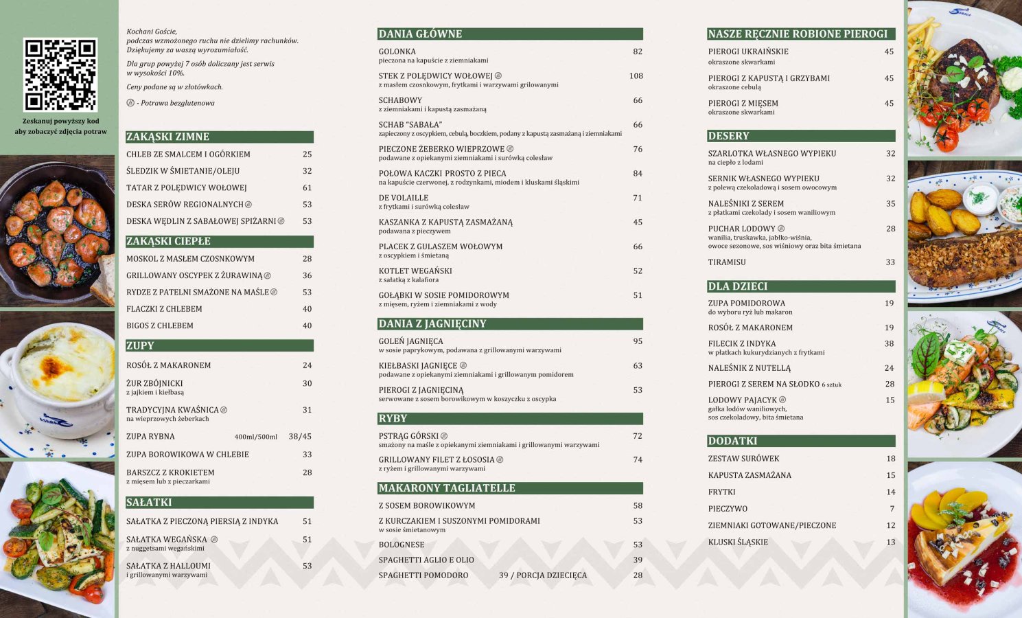 Bogaty wybór dań i napoji w Menu.